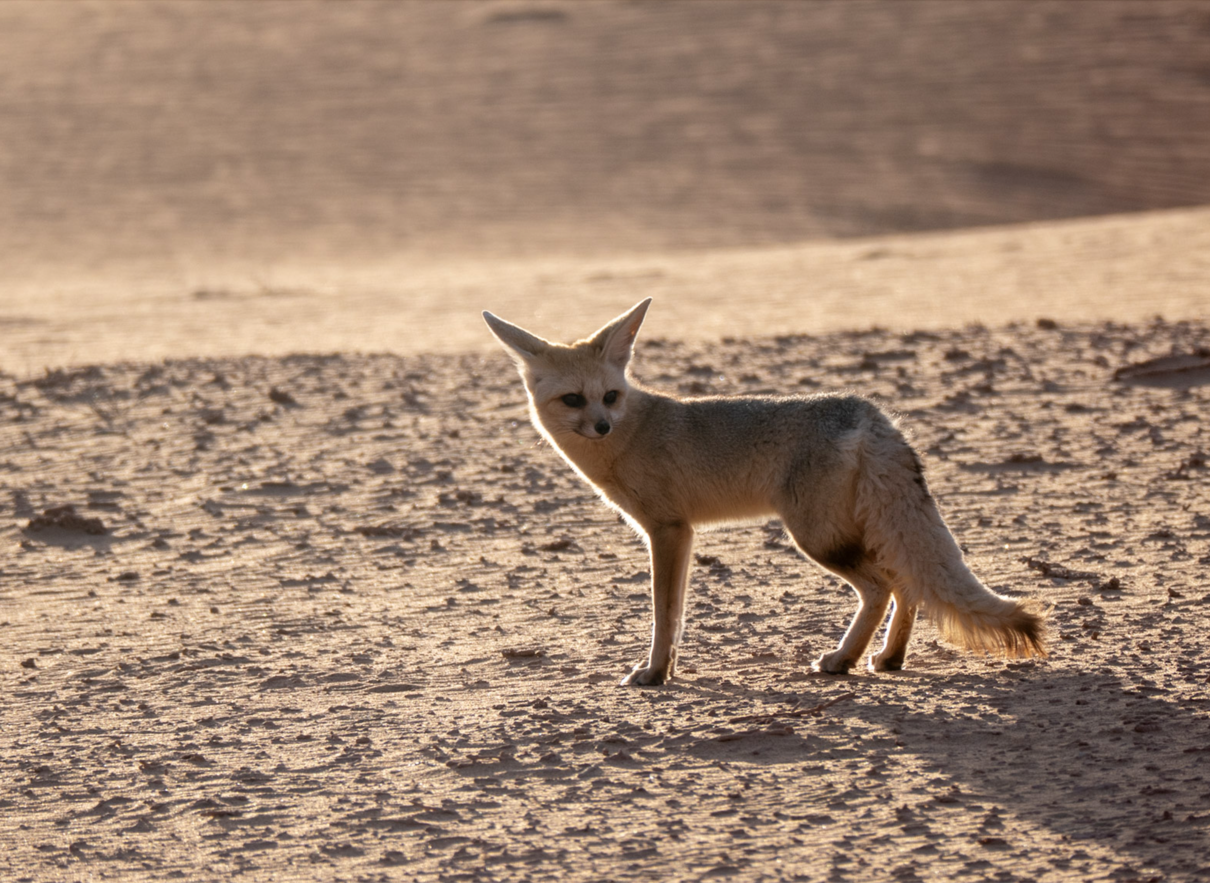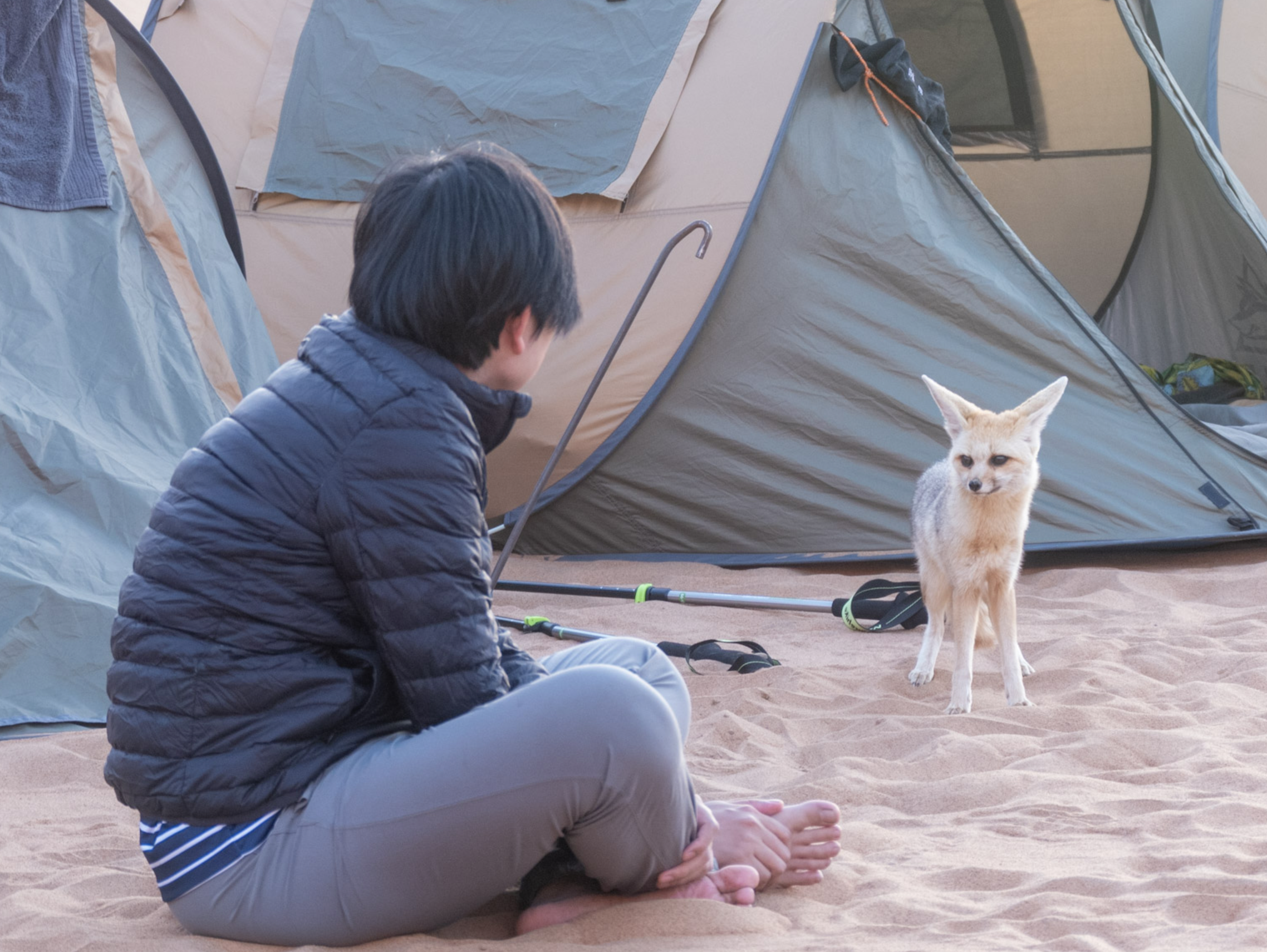 The resident desert fox curiously explores our group and the camp - she is barely afraid as we are probably the first guests to ever stay at her "home"
