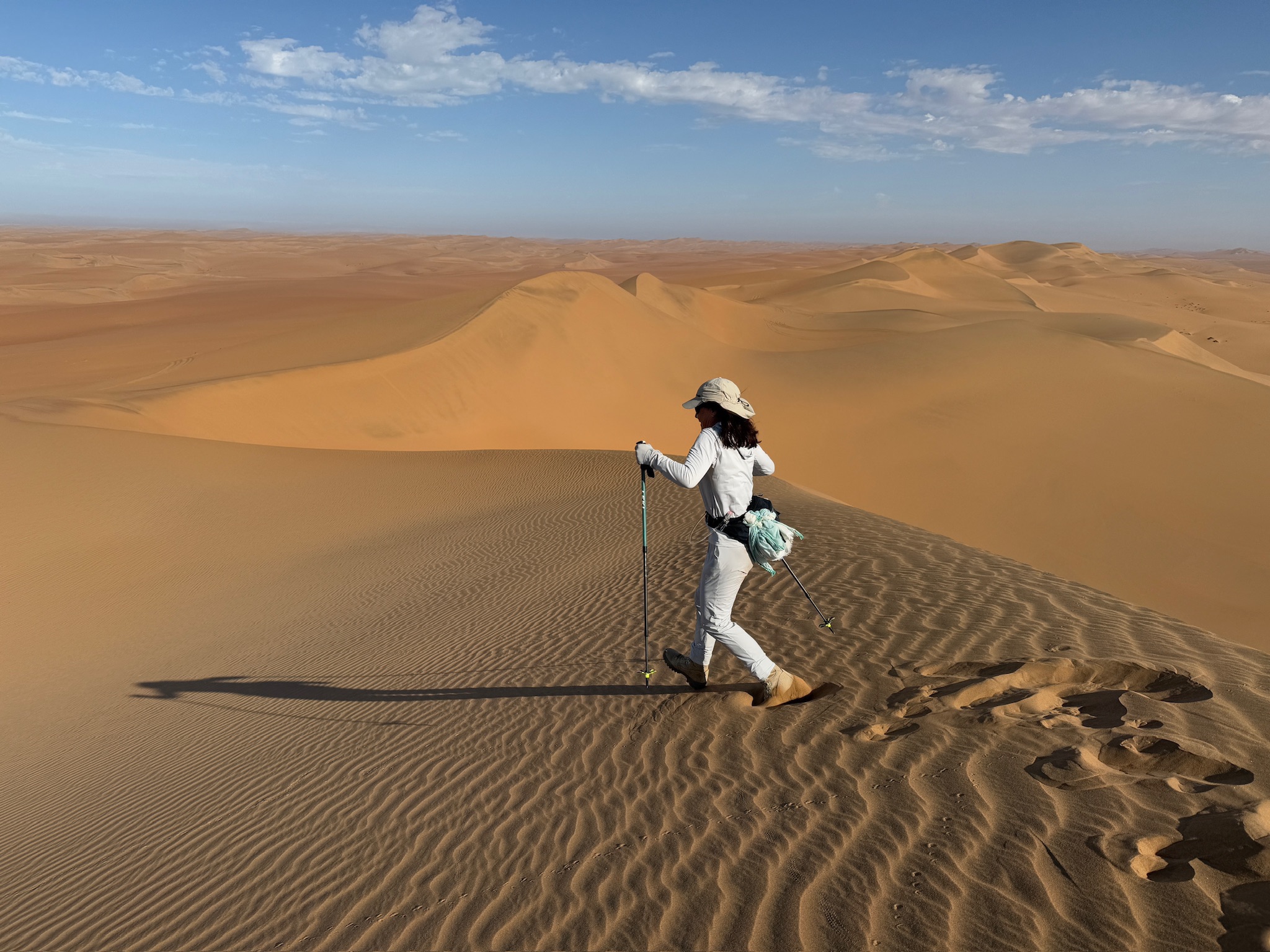 There are moments that are rather challenging (mentally as well as physically), like hiking up soft sand dunes like in this photo.