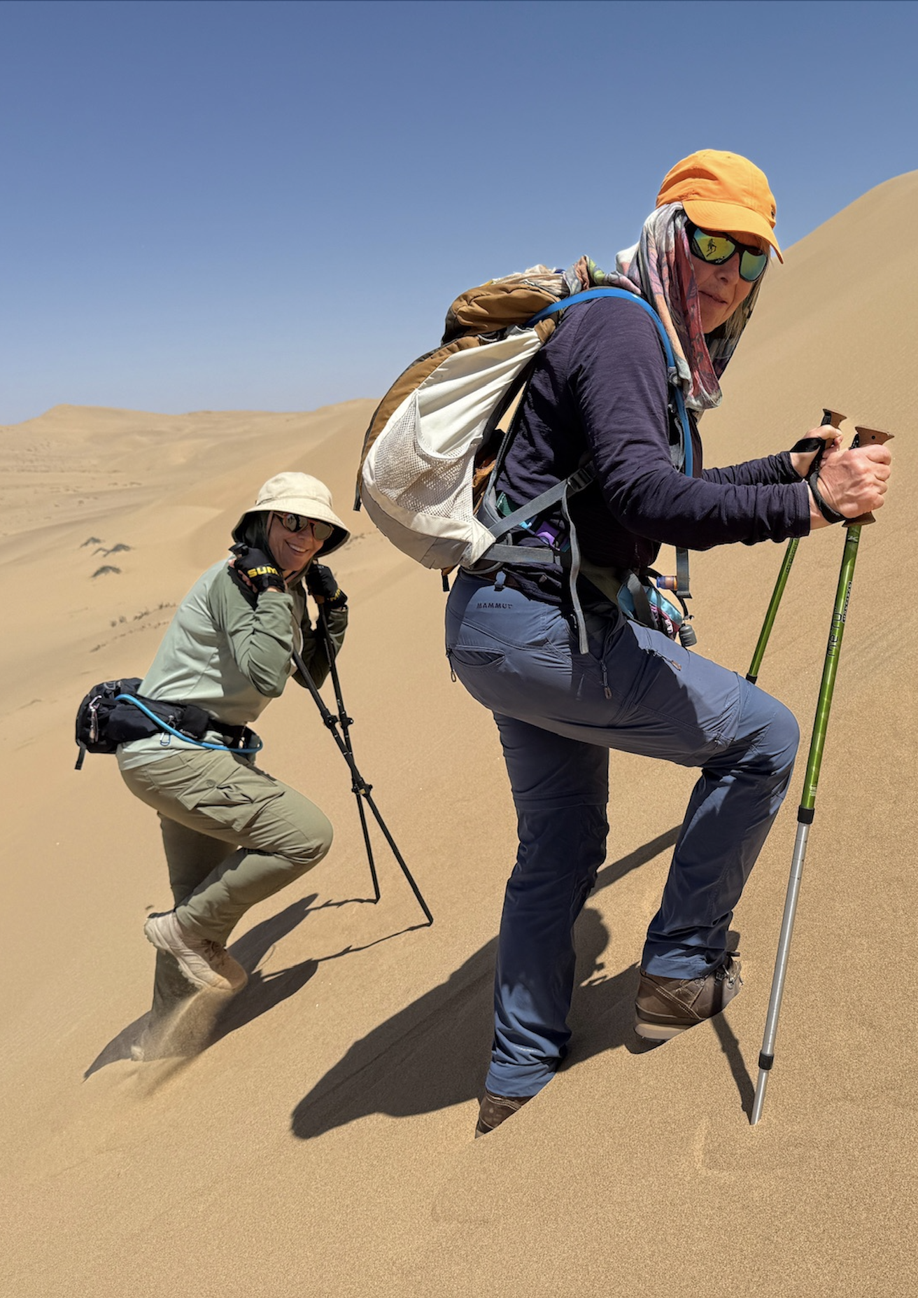 But here we go: In September 2023 Sonja organised the first all female expedition to conquer the Namib on foot: 17 women, 12 nationalities, 5 days of hiking, 120 kilometres!!!